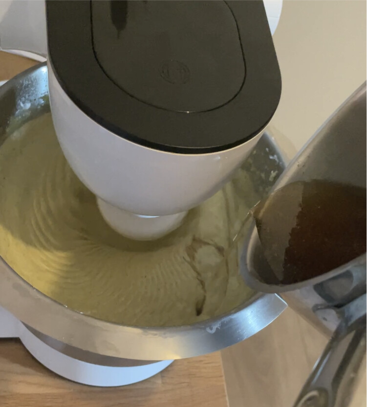 De cake is luchtig en romig en toch stevig, door de zachte kokosmelk en de Great Lakes rundergelatine. De zoete smaak van de gecarameliseerde honing geeft de cake diepte en de hoog geconcentreerde pistachepasta geeft een mooie body die de cake bij elkaar brengt.